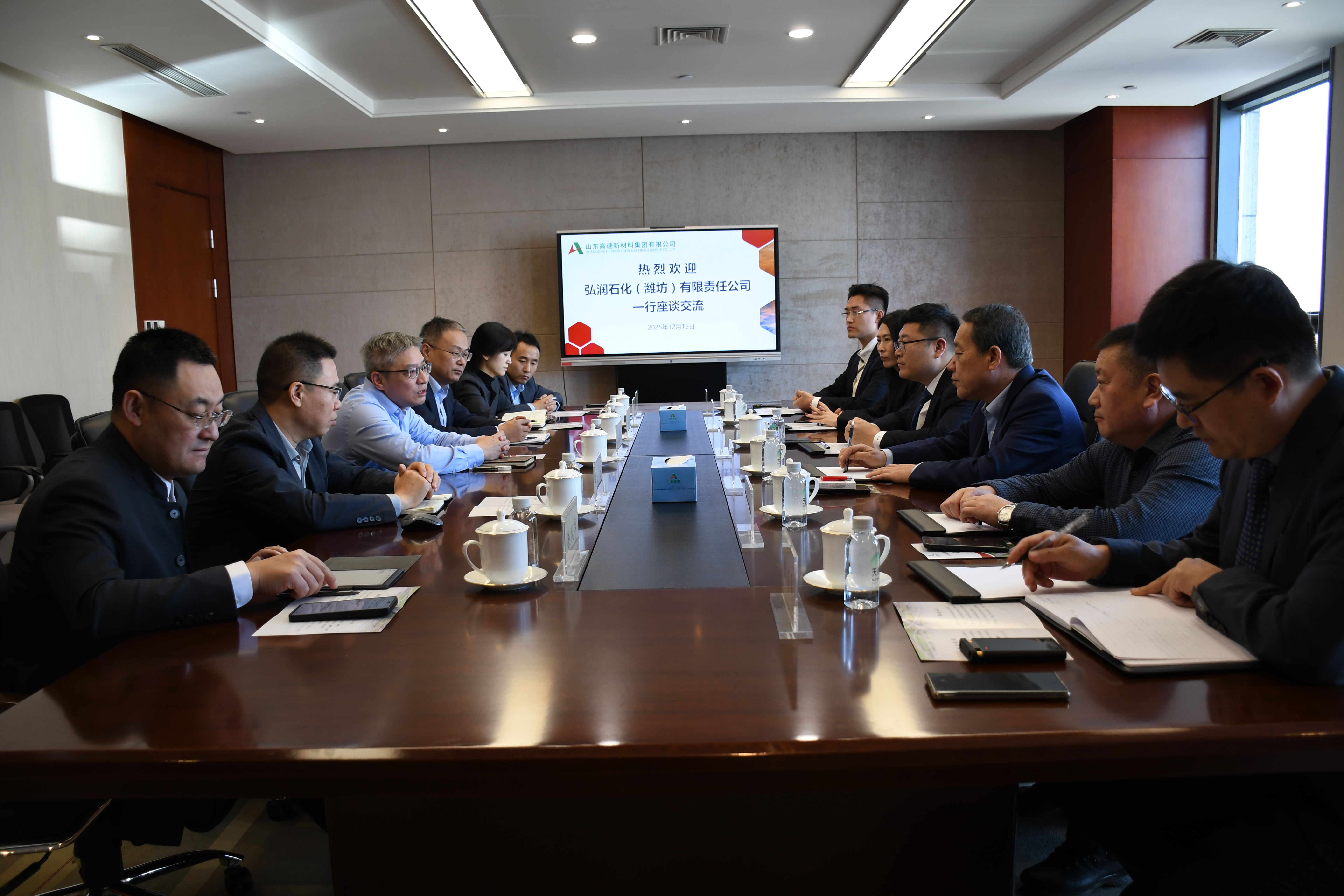 董鹏对新材料集团取得的成就表示赞赏,并介绍了弘润石化产业布局与未来投资规划。他表示,双方产业协同性强、合作基础扎实,期待以此次签约为起点,在多领域开展深层次、全方位合作,建立常态化沟通协作机制,加快推进具体合作项目落地见效,共同开拓更广阔的市场空间。